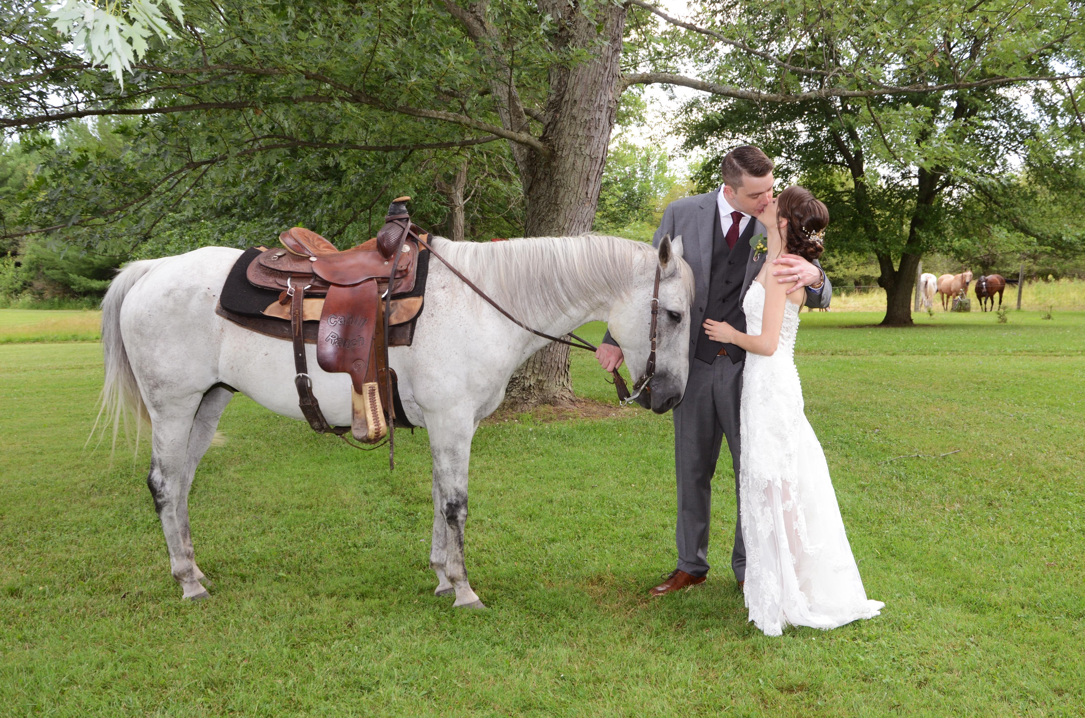 Bride and groom with horse at The Texas Longhorn Ranch by Columbia Photos